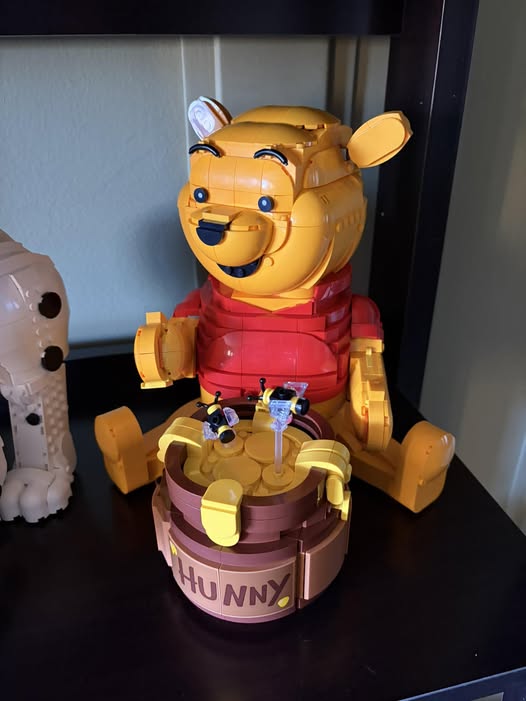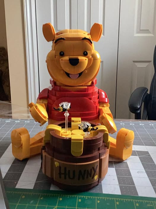The detail on this thing is unreal. Pooh sitting on his Hunny pot with the little bees — it's the cutest thing I've ever built.